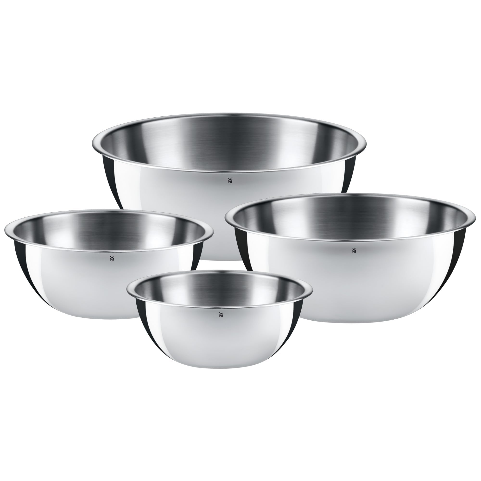 WMF Gourmet Schüsselset 4-teilig, Edelstahl Schüsseln für die Küche 0,75l - 2,75l, Rührschüssel Edelstahl, Salatschüssel, Servierschüssel, Cromargan, stapelbar